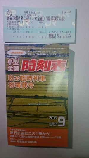 | 青春18きっぷと小型全国時刻表 2015.9 |